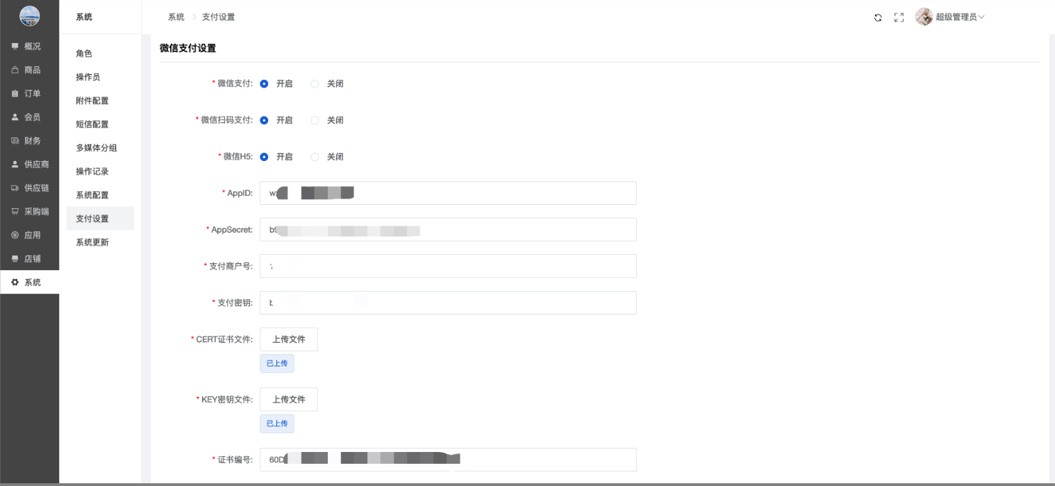 注意:这一步是很重要, 在商城所有开始交易之前,要把支付配置完成,否则所有交易会失败;