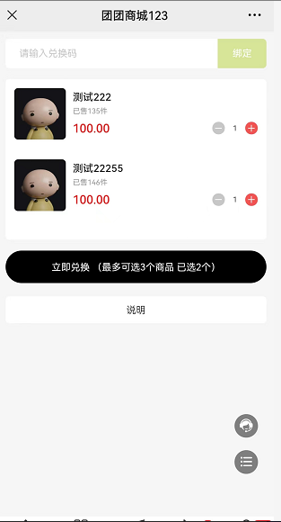 客服按钮:兑换码页面右下角会显示客服悬窗按钮(走商城设置的客服)