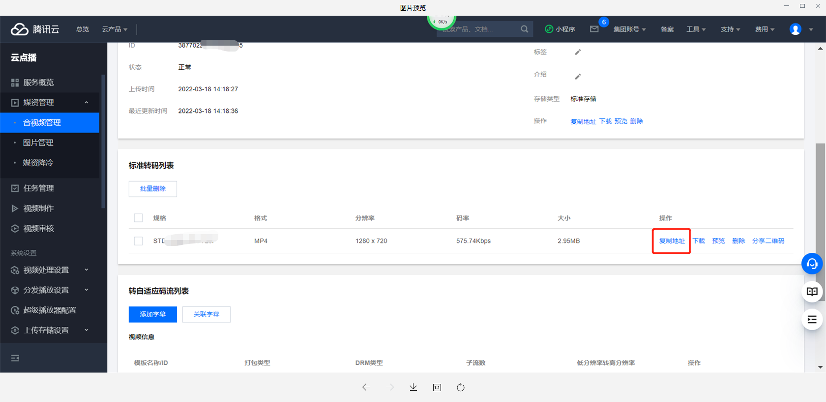 复制地址http://1300122223886.vod2.myqc030.mp4,前缀需要手动加上一个s,得https://1300122223886.vod2.myqc030.mp4