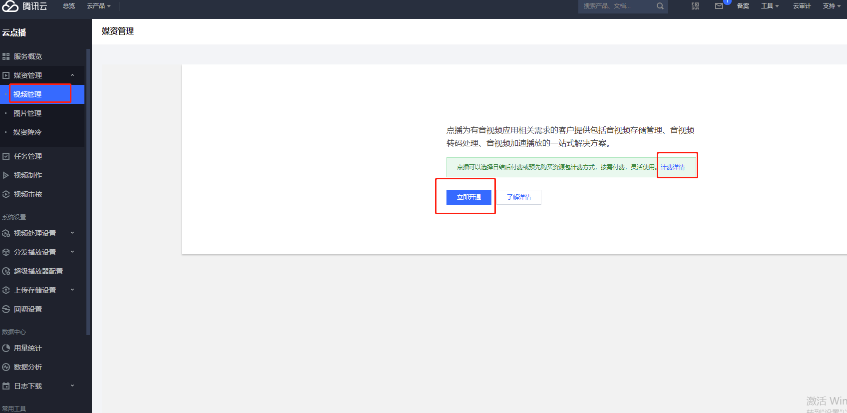 一般来说,需要开通三个套餐包。存储资源包(决定可以上传视频的容量)、转码包(可以转换视频的清晰度,清晰度不一样所产生的观看流量也是不一样的)、流量包(视频上传到特定平台后,用户观看所产生的流量)