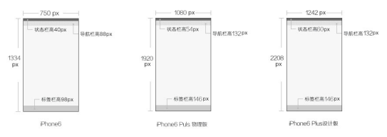 2. 状态栏高度:750*40px、导航栏高度:750*88px、标签栏高度:750*98px