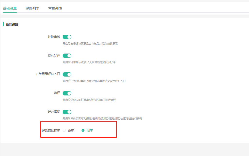 开启后会员评论(首次评价、追评)需要后台审核后才能在前端显示。用户对主评论的回复不用审核,可直接显示。