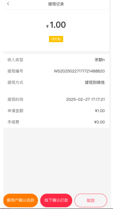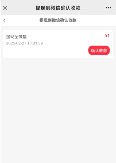 注意:这个页面的确认收款按钮会一直显示,需要点击进入才判断这笔提现是否打款到账;